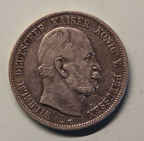 Jäger-Nr.: 97 Material: Silber 900, Kupfer 100 Durchmesser: 38 mm; Gewicht: 27,778 g Vorderseite: Kleiner Reichsadler mit großem Brustschild Rückseite: König Wilhelm I., ab 1871 Kaiser Wilhelm I. (1858 - 1888) Rand: GOTT MIT UNS Auflage: 812.361 Stück