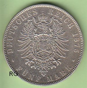» Start » Kaiserreich » Sachsen » (Mi6) 5 Mark Sachsen 1875 E ss